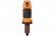 Шлифмашину можно использовать и как ручной инструмент, и как компактный станок. Возможность крепления к столу или верстаку вверх подошвой предусмотрена штатно: в корпусе есть отверстия для съемных винтовых струбцин, которые, наряду со специальной резиновой прокладкой, входят в комплект поставки. Еще один аксессуар из базового комплекта – съемный регулируемый упор заготовки. Он крепится к подошве двумя винтами и по принципу действия отдаленно напоминает фрезерный упор: на него можно опереть заготовку, он помогает задать и удержать глубину съема материала.
